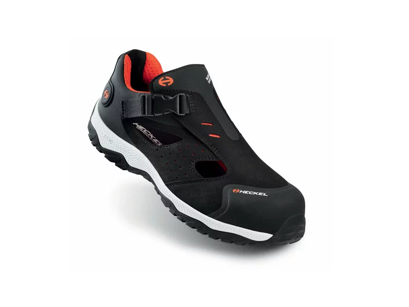 Защитни сандали S1P HRO SRA, материал: набукова кожа с големи дупки, подметка: нитрил, устойчив на масла, киселини и химикали, термоустойчив HRO, подплата: високодишаща материя, стелка: анатомична, дишаща, пластмасов пръст + защита от пробождане с нокът, 100% без метал, изключително леки обувки (1 обувка № 42=550 g). EN ISO 20345:2011.